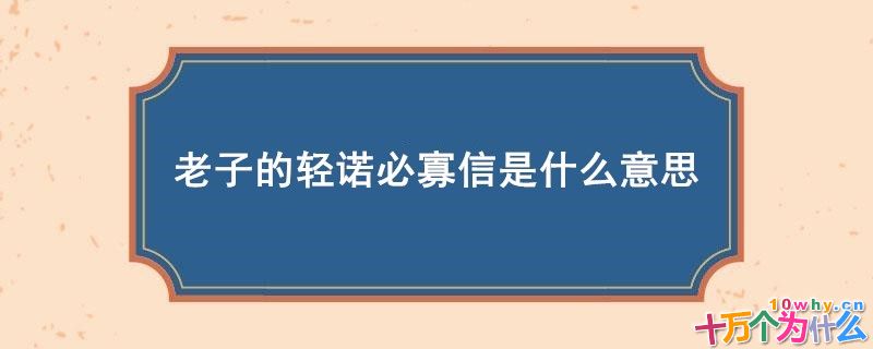 轻诺必寡信的意思是:轻易许下的诺言一定存在很低的可信度。这句话出自《老子》一书中,是老子思想的体现。