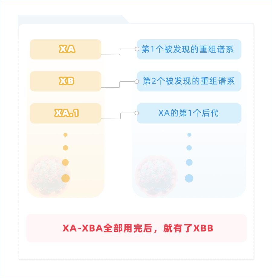 XBB属于新冠病毒中特殊的一类——“重组谱系”,它们的前缀统一为X+拉丁字母。