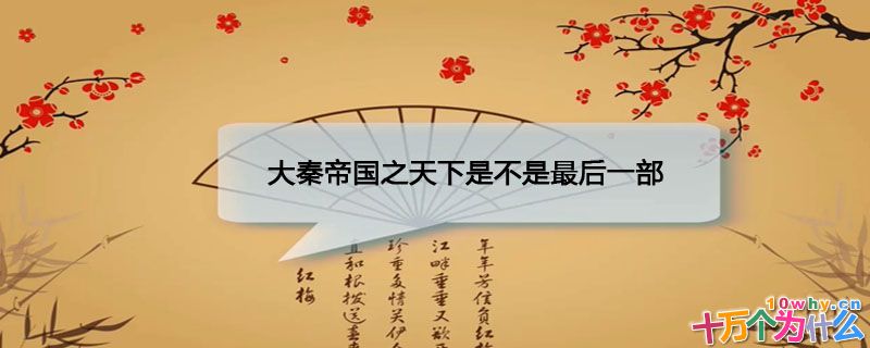 大秦帝国之天下是最后一部;大秦帝国之天下主要讲述了秦昭襄王、孝文王离世后的故事。《大秦帝国》系列讲述了战国时代的秦国经变法而由弱到强,最后与六国争霸进而一统天下,以及走向灭亡的过程,是一部以秦国为主要视点来展现战国时代波澜壮阔的史诗。