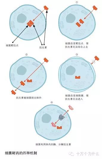 耐药性根据其发生的原因可分为获得耐药性和天然耐药性。自然界中的病原体,如细菌的某一株天生就对某种抗生素具有耐药性,将药物阻拦或排斥在体外;也有一些细菌通过自身的“梳妆打扮”和破坏抗生素来避免被抗生素杀死。当长期应用抗生素时,原来占多数的药物敏感菌株不断被杀灭,而原来只是少数的耐药菌株却具有了更大的生存优势,它们伺机大量繁殖,致使其对该种药物的耐药力不断升高。这也是产生耐药菌的主要原因。