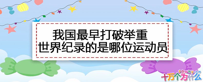 我国最早打破举重世界纪录的是陈镜开。1956年6月7日,陈镜开以133公斤的成绩打破最轻量级挺举世界纪录,创造了中国第一个世界纪录。