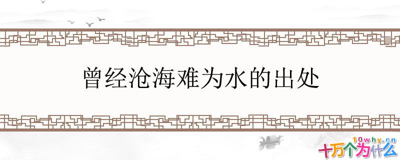 元稹的《离思五首》写到:“曾经沧海难为水,除却巫山不是云。取次花丛懒回顾,半缘修道半缘君。”意思是见过了波涛汹涌的大海,其他地方的水就不值一提,见过了巫山的彩云,其他地方的云就相形失色。经过繁花似锦的花丛,我却懒得回头一看,一半原因是因为修道,另一半原因是因为我想你。这是唐代诗人元稹在怀念自己亡故的妻子韦丛的时候写的诗,元稹的妻子在他还没有考取功名,一贫如洗的时候嫁给了他,为他操持家务,生儿育女。他的妻子出生名门,过着这样辛苦的日子却从不抱怨,与元稹十分恩爱。但是在元稹飞黄腾达的时候,因为产后大出血去世了。元稹在后来的人生中经常会怀念自己的这个妻子,“曾经沧海难为水”就是他写给妻子的诗。这句话引用了《孟子 尽心上》里:“观于海者难为水”的典故,是说见过大海的人都不会再看得上其余的水,元稹用此来形容自己有了妻子后再也不会看上别的女子。