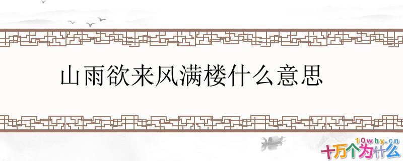 “山雨欲来风满楼”意思是暴雨之前刮起了烈风,现在用来形容冲突或战争爆发之前的紧张气氛。出自唐代许浑的《咸阳城东楼》中“溪云初起日沉阁,山雨欲来风满楼”。