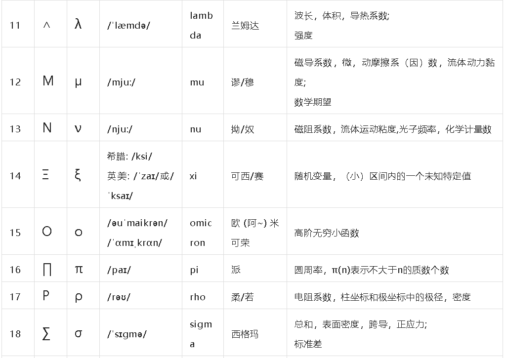 滑动查看希腊字母表