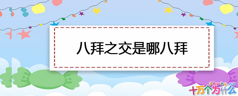 八拜之交是知音之交、刎颈之交、胶膝之交、鸡黍之交、舍命之交、生死之交、管鲍之交、忘年之交。八拜之交出自邵伯温《闻见前录》:“丰稷谒潞公,公着道出,语之曰:‘汝父吾客也,只八拜。’稷不获已,如数拜之。”