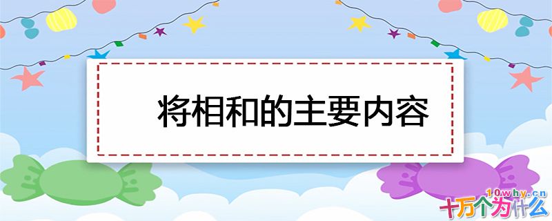 将相和的主要内容是:战国时赵国舍人蔺相如奉命出使秦国,不辱使命,完璧归赵,被封了上大夫;又陪同赵王赴秦王设下的渑池之会,使赵王免受秦王侮辱。赵王为表彰蔺相如的功劳,封蔺相如为上卿。老将廉颇对此产生了不满,他觉得自己也战无不胜,攻无不克,蔺相如只不过是一个文弱书生,只有嘴皮子功夫厉害,对此心怀嫉妒。