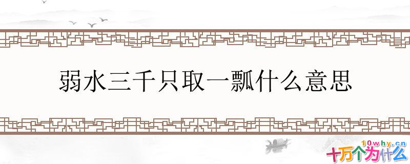 “弱水三千只取一瓢”,是佛教里的一个故事,用来告诫人们不要贪心,把握住其中一样就好。后来也被引用来表示对爱情的专一。